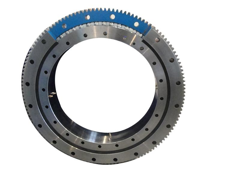 單排四點接觸球式轉盤軸承由兩個座圈組成,結構緊湊、重量輕、鋼球與圓弧滾道四點接觸,能同時承受軸向力、徑向力和傾翻力矩。回轉式輸送機、焊接操作機、中小型起重機和挖掘機等工程機械均可選用。